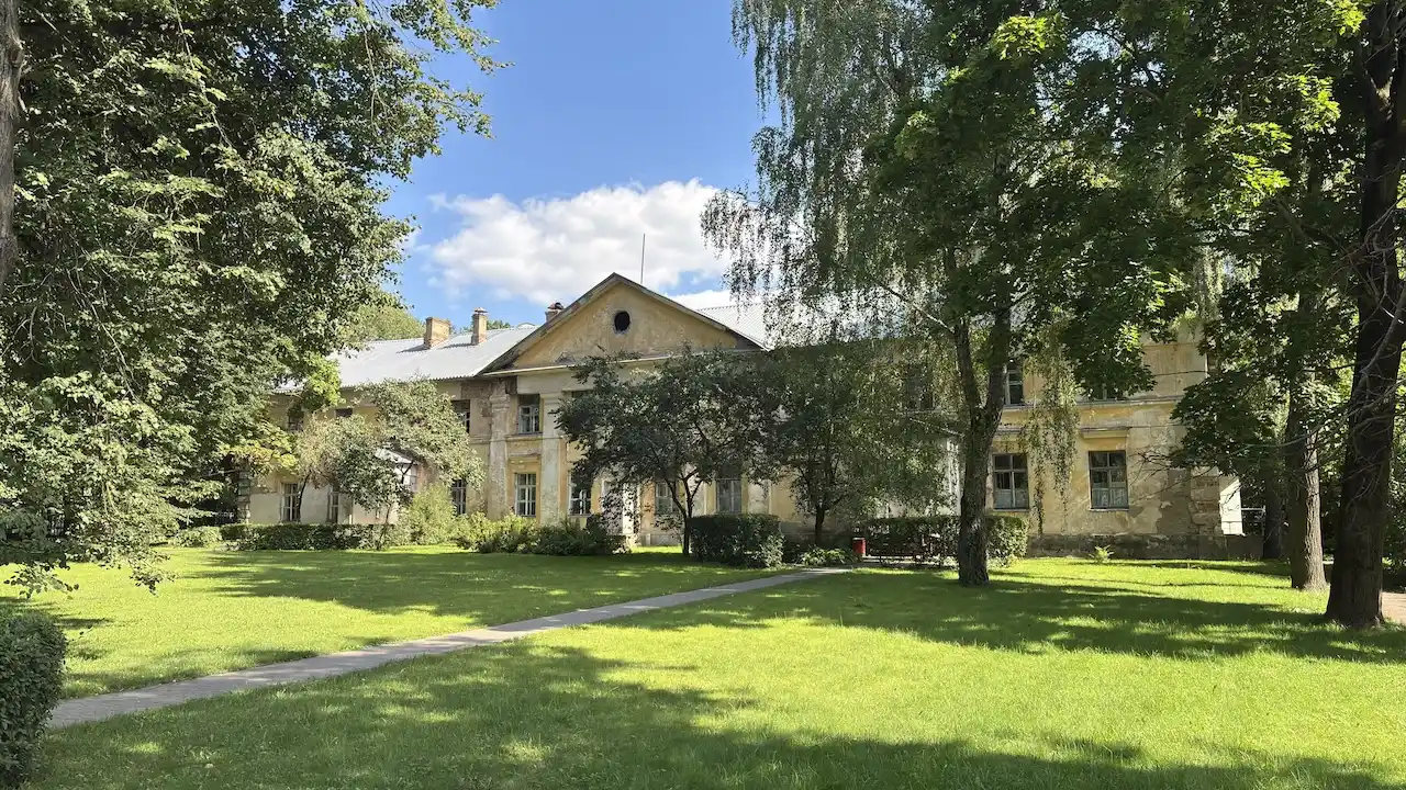 Где найти старую суконную фабрику в музее-заповеднике «Остафьево» — «Русский Парнас»? Здания можно легко пропустить, так как указателя к ним нет. После прохождения турникета нужно повернуть налево, в сторону туалета и детской площадки, а затем ещё раз налево.